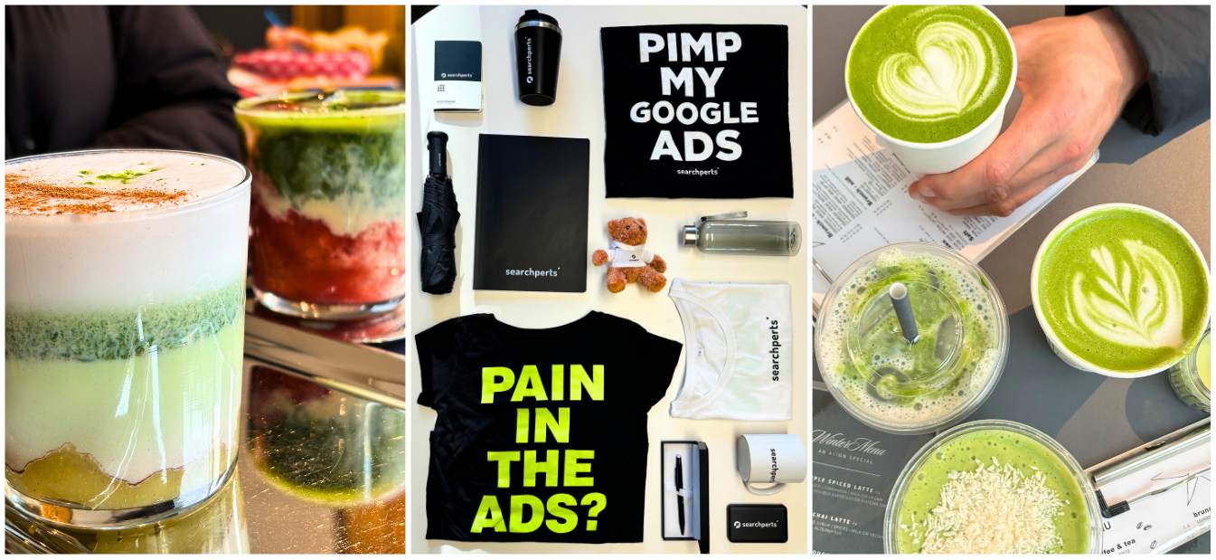 Matcha Mittwoch. Alle 2-4 Wochen tauschen wir Google Ads gegen Matcha Latte. Wir probieren neue oder bewährte Matcha Cafés in Düsseldorf aus, quatschen über alles außer Kampagnen und kommen einfach als Team zusammen. Klingt klein, ist aber einer der Momente, die uns als Team heilig sind.